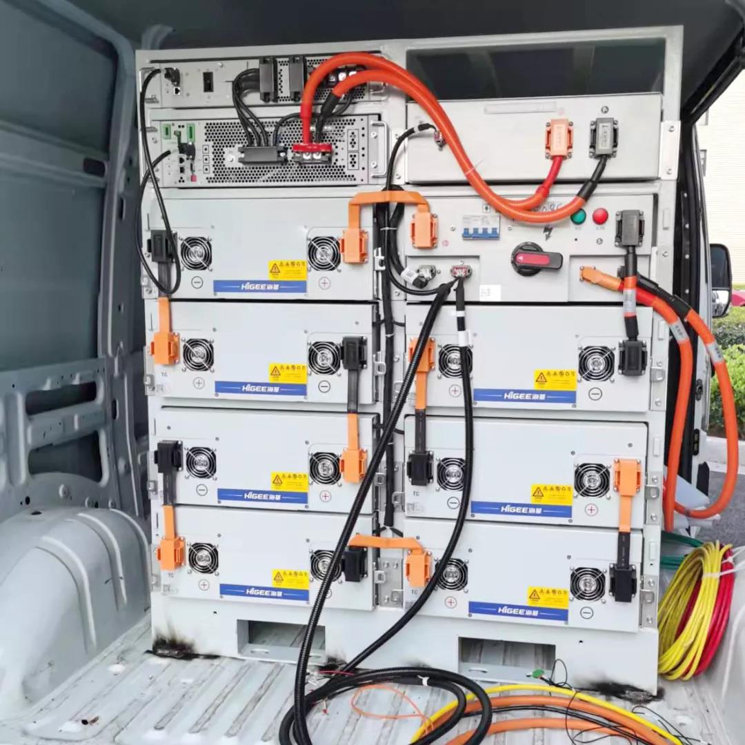 最近海基新能源廠區PACK車間門口停放的一輛白色依維柯頗引人注意,而現場PACK安裝人員正忙碌的調試系統和安裝電池,原來這是一輛移動儲能車!